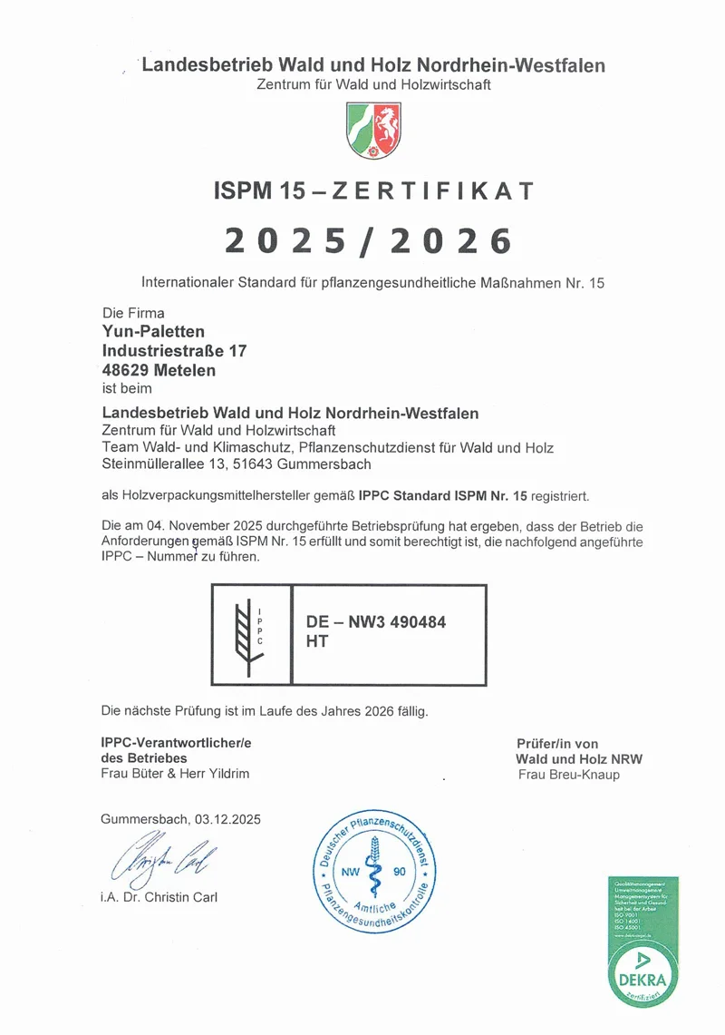 Entdecken Sie unsere vielfältige Auswahl an Ladungsträgern, die speziell für Ihre Bedürfnisse entwickelt wurden. Zu unseren Hauptprodukten gehören Euro Paletten (EPAL), die für ihre Robustheit und Vielseitigkeit bekannt sind, Einwegpaletten mit ISPM 15 Behandlung für internationale Versandstandards sowie Gitterboxen für schwere und sperrige Güter. Erfahren Sie mehr über unsere Produkte und Sonderanfertigungen auf unserer Paletten-Seite.